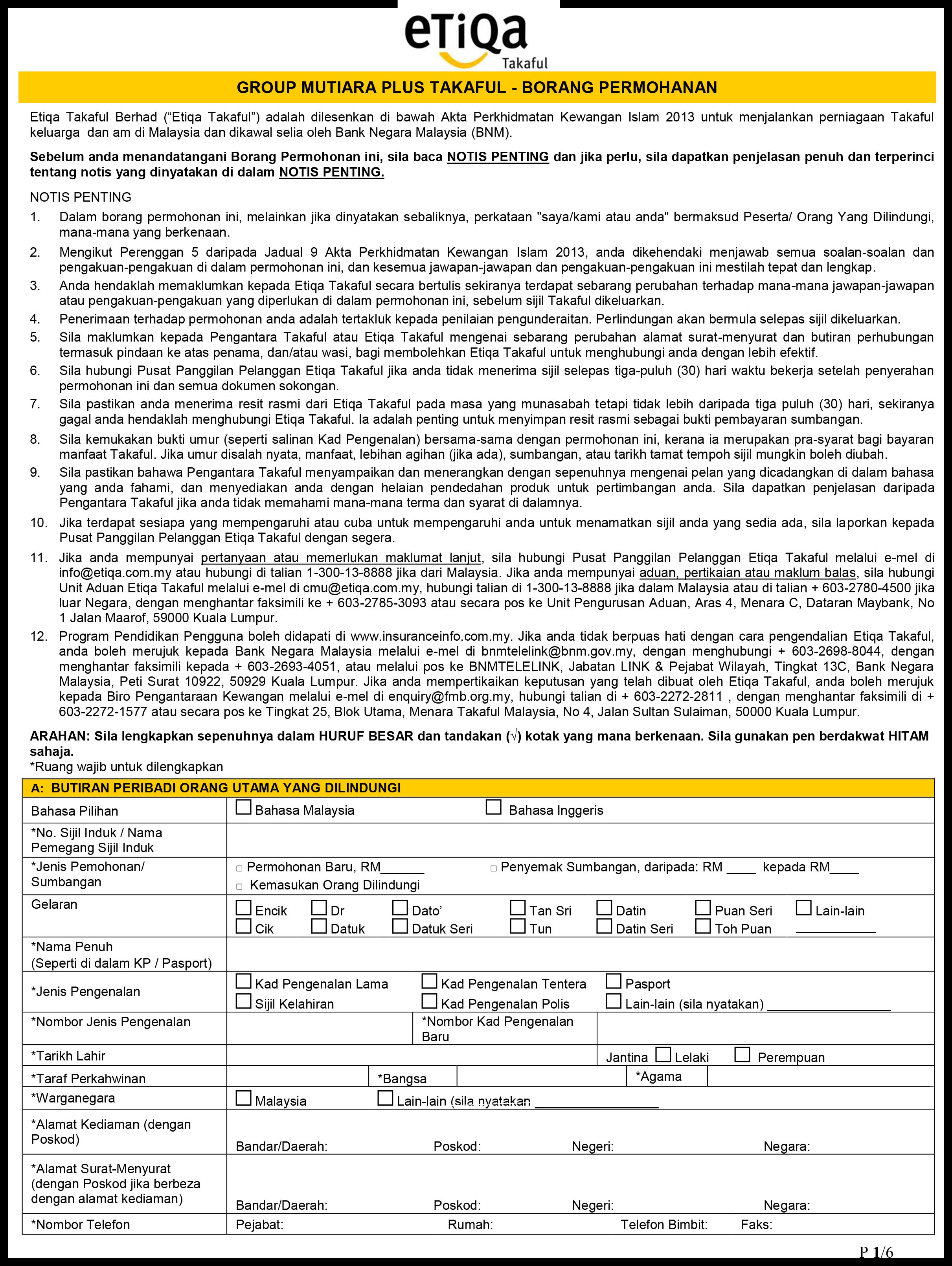 1. Sila klik gambar borang di bawah ini untuk download Borang Mutiara Plus